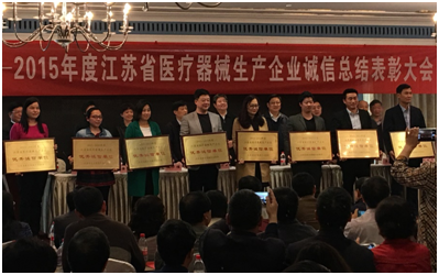 作者:南京科進 瀏覽:456 發布時間:2016/5/16 17:32:154月27日,江蘇省藥監局在南京曙光大酒店召開全省醫療器械生產企業誠信總結表彰大會,表彰2013-2015年度江蘇省醫療器械生產企業誠信單位,江蘇省食品藥品監督管理局黨組書記、局長胡曉抒到會并作重要講話。