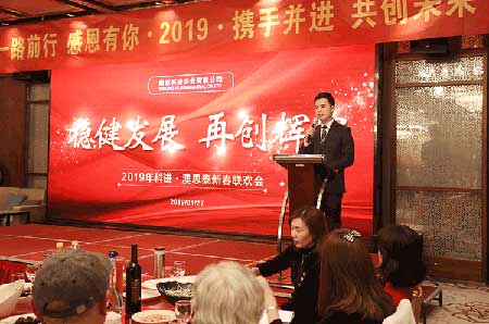 然后澳思泰總經理俞政濤發表新年致辭,他說,2018年公司取得了驕人的業績,總銷售收入和利稅增長超過30%,共取得19項知識產權,企業管理水平進一步提升,他代表公司感謝全體員工、家屬和各界朋友!2019年公司要加大技術創新力度,以滿足用戶需求為目標,加強內部管理,“穩健發展,再創輝煌”。隨后他宣布:聯歡晚會正式開始!