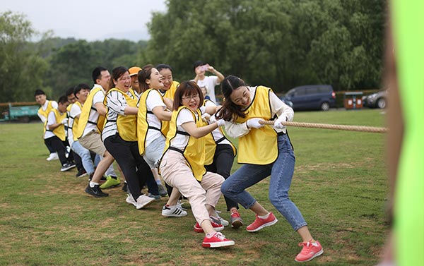 第一個是拔河比賽,一開始是紅隊和黃隊進行,隨著裁判的哨聲一響,兩隊的人員都拼了命拉起了繩子,兩邊的啦啦隊也扯開嗓子大聲加油助威,上場的小伙子小姑娘們也顧不上形象,閉著眼睛,咧著嘴,各個都使出吃奶的勁,為的就是能夠贏得比賽,貢獻自己的全部力量。其實在工作中也一樣,我們在各自的崗位上努力做好自己的本職工作,就能為公司創造效益,就能讓我們在行業里處于不敗的地位。