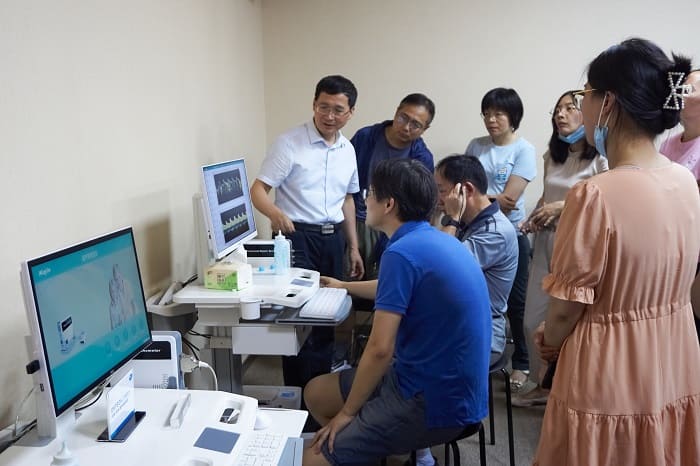 科進公司領導對專家們蒞臨指導表示熱烈歡迎,研發工程師為專家們介紹了南京科進的TCD儀及產品的臨床應用,并作了現場操作演示,對有關技術問題進行了深入探討。