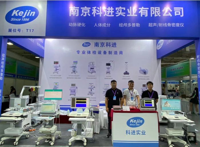 南京科進經理現場為參觀者進行產品的專業講解,貼心的服務讓參觀者大為贊賞。現場展示的實物產品不僅可以讓參觀者了解產品的外觀和造型,而且可以讓參觀者進行親身體驗,更加深入的了解儀器的功能和檢查流程。下面我們來看看現場照片。
