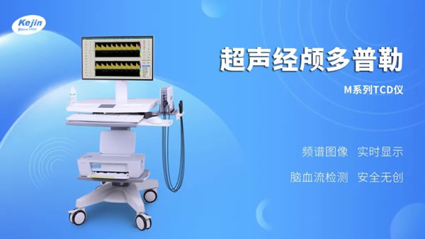 科進品牌推出的超聲經顱多普勒血流分析儀KJ-2V7M型,匯集了小信號識別、M模和血管自動搜索等多項TCD技術,可實現單、雙通道雙模式檢測,配置了復合材料超聲探頭,多深度模式可同時顯示八個深度的血流頻譜信號。