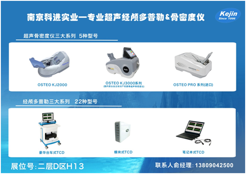 屆時科進將攜帶國內技術領先的TCD超聲經顱多普勒與最新骨密度儀系列產品亮相展會,科進的展位號為二層DH13,歡迎蒞臨指導,參觀科進展位同時我們還有精美禮品相贈。