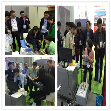 科進展臺還吸引了不少國外專業觀眾,國外客戶對我公司的新款M型TCD儀表示出了極大興趣,并親自體驗。該款產品采用模塊化設計,主機重量僅2KG,攜帶使用十分方便,也便于出口運輸。外國客人還體驗了公司最新研發的OSTEOKJ3000超聲骨密度儀,該產品軟件包含了中國人、歐洲人、非洲人、中東人等多個人種的人群骨質數據庫,測試數據穩定可靠,可應用于全球大部分地區。